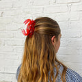 Channel your inner crab with our playful claw inspired by the iconic Dungeness crabs of San Francisco Bay! Crafted from eco-friendly cellulose acetate, this vibrant accessory adds a touch of seaside charm to your hairstyle. No need to visit the bay for a taste of these sweet and tender crabs—just enjoy the unique flair of this 4" x 3" handmade, hand-painted claw. Color variations make each piece uniquely yours.
